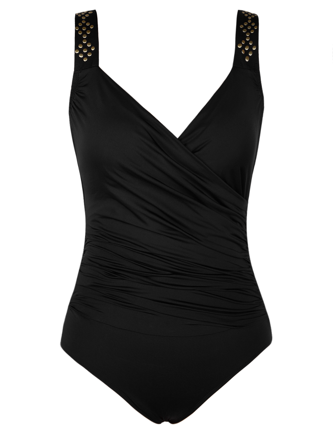 Women's One Piece Swimsuit Surplice Shirred Monokini Tummy Control Bathing Suit